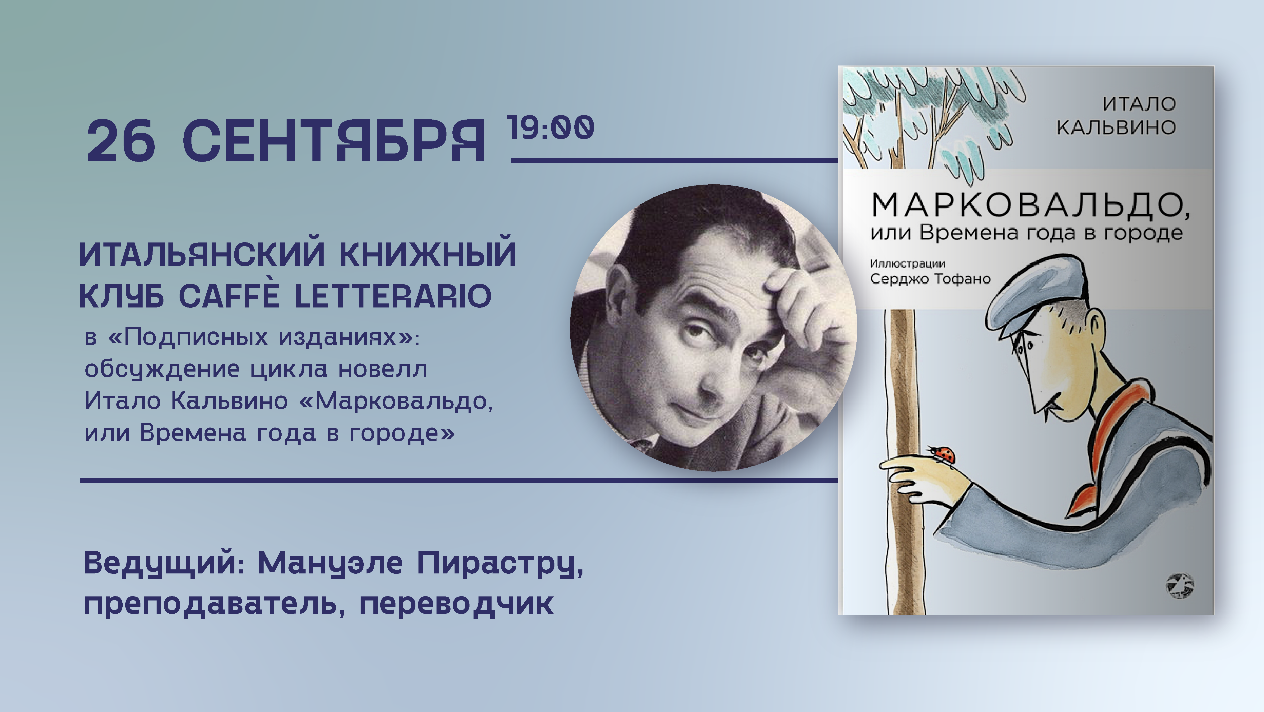 «Смешной и меланхоличный персонаж Марковальдо – главный герой цикла современных сказок», так записал Итало Кальвино в одном из своих блокнотов, где отмечал все кажущиеся незаметными события в жизни большого промышленного города: как неожиданный ливень или утренний порыв залётного ветра.