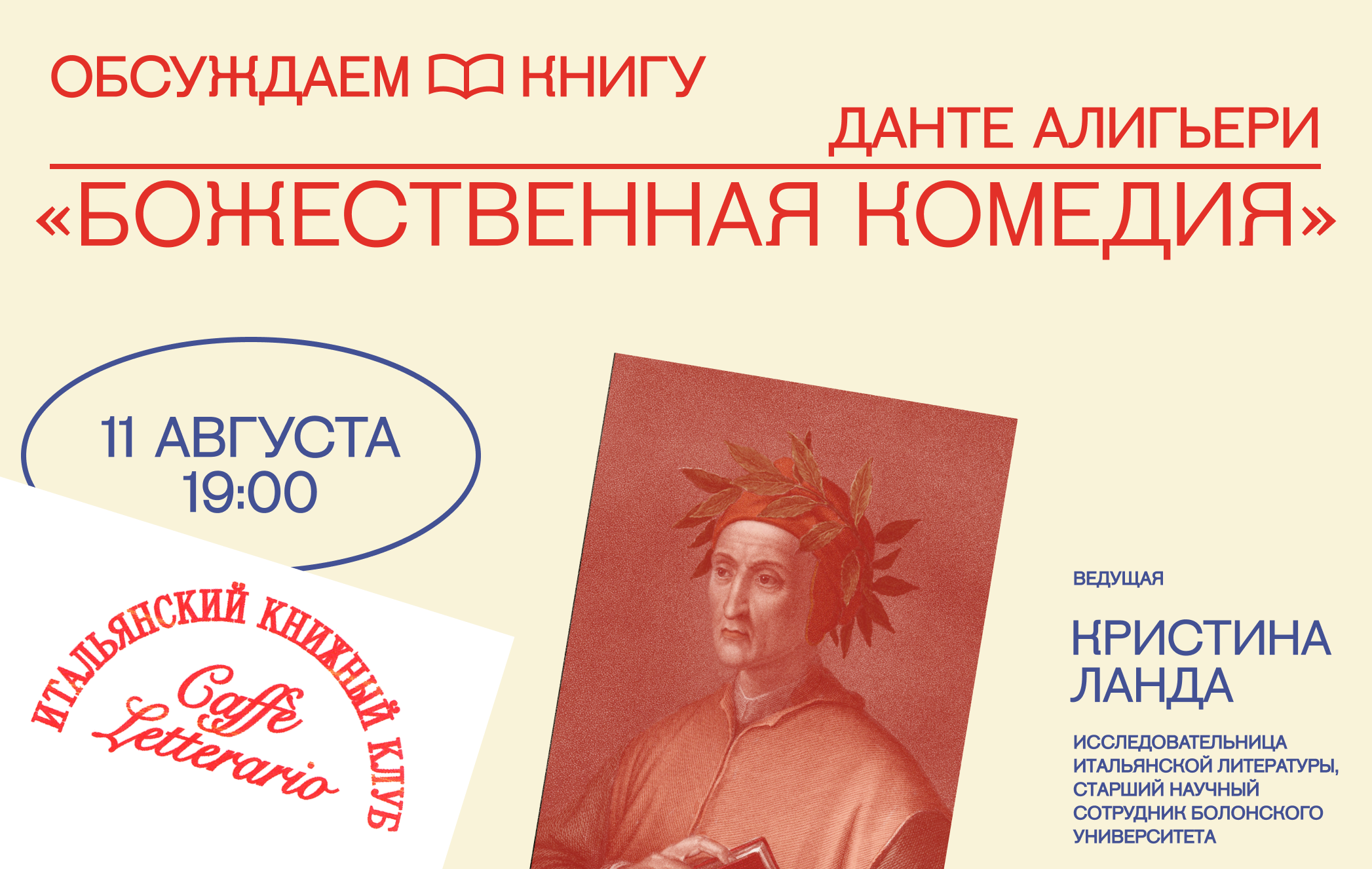 Встречу итальянского клуба Caffè Letterario в книжном магазине «Подписные издания» проведёт Кристина Ланда, исследователь итальянской литературы, cтарший научный сотрудник Болонского университета, автор изданных на русском языке монографий «Божественная Комедия в зеркалах русских переводов. К истории рецепции дантовского творчества в России» и «Поэтика радости в «Комедии» Данте. Оригинальный текст и канонический перевод».